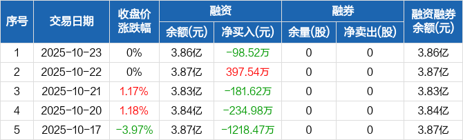 会通股份:融资净偿还98.52万元,融资余额3.86亿元(10-23)