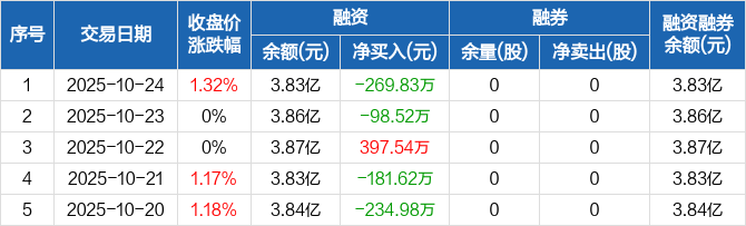 会通股份:融资净偿还269.83万元,融资余额3.83亿元(10-24)