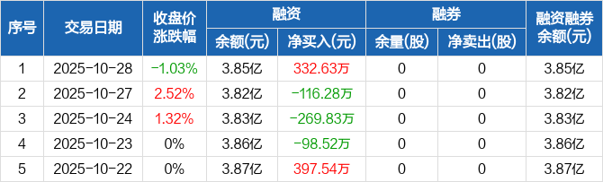 会通股份:融资净买入332.63万元,融资余额3.85亿元(10-28)