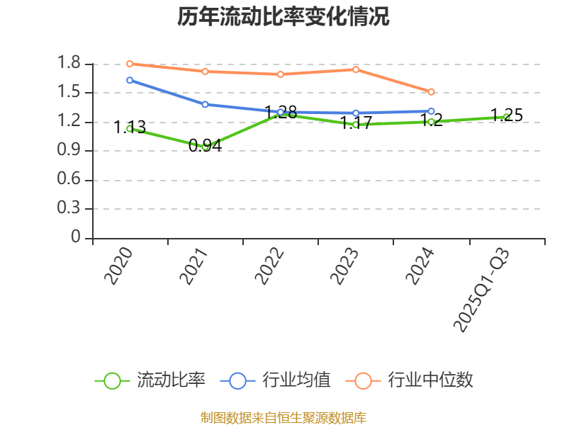 2025年前三季度,公司流动比率为1.25,速动比率为1.1。