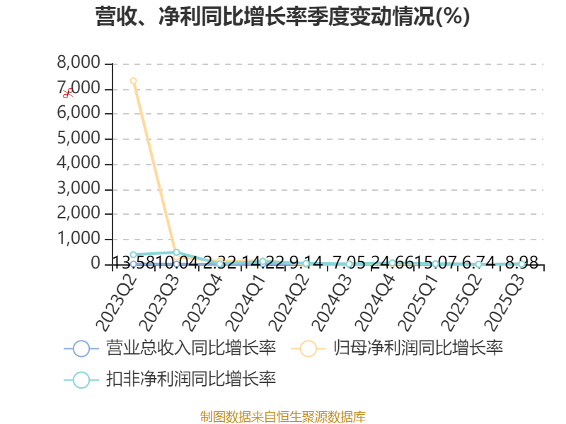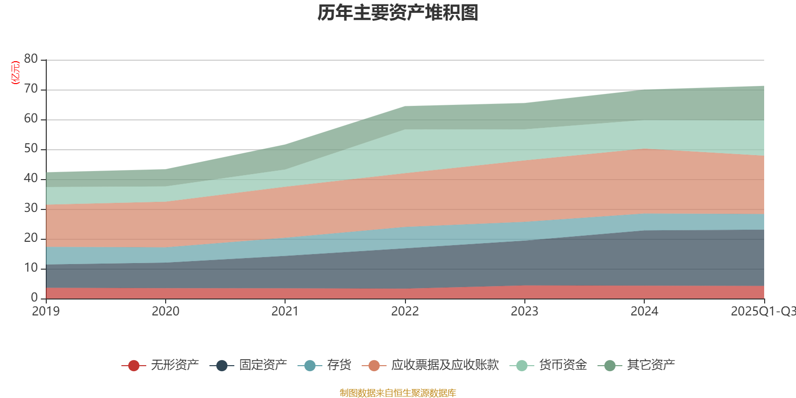 资产重大变化方面,截至2025年三季度末,公司应收票据及应收账款较上年末减少10.22%,占公司总资产比重下降3.66个百分点;货币资金较上年末增加23.71%,占公司总资产比重上升2.96个百分点;交易性金融资产合计较上年末增加324.92%,占公司总资产比重上升2.27个百分点;存货较上年末减少7.73%,占公司总资产比重下降0.75个百分点。