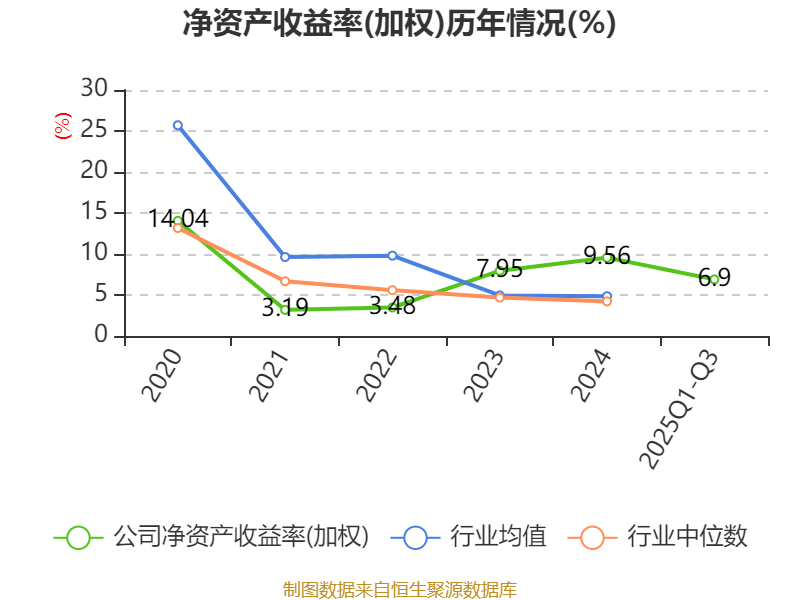 盈利能力方面, 2025年前三季度公司加权平均净资产收益率为6.9%,同比下降0.79个百分点。公司2025年前三季度投入资本回报率为4.48%,较上年同期下降0.18个百分点。
