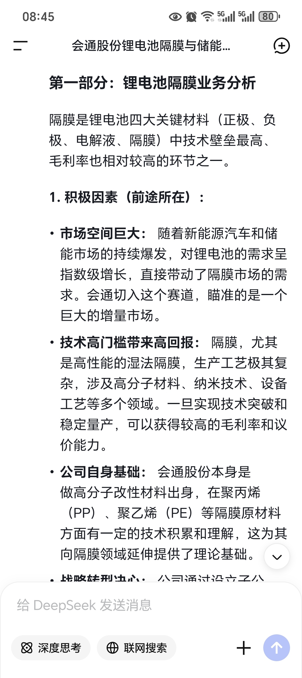$会通股份(SH688219)$ 会通股份现在正赶上锂电池和PEEK材料的风口,2024年报资的17亿平方米的锂电池隔膜大有前途,在锂电池中(正极、负极、电能液、隔膜)隔膜技术含量是最高的;上个月在上海投资的PEEK材料供不应求