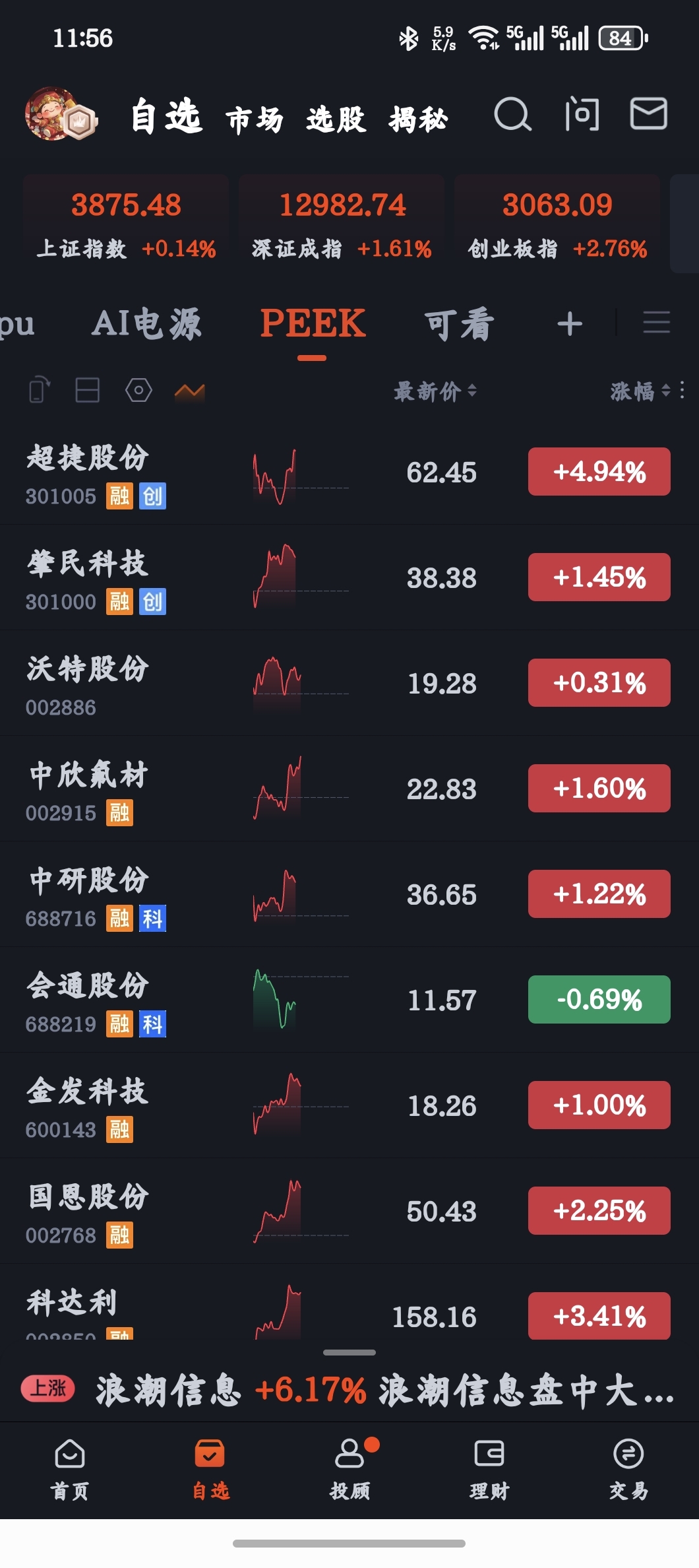 今天大部分PEEK的公司都在上涨,只有会通独树一帜的绿与众不同,就像暗夜里的萤火