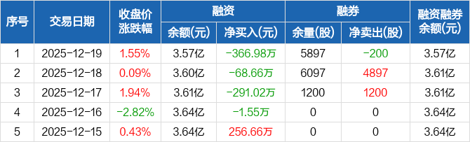会通股份:连续4日融资净偿还累计728.2万元(12-19)