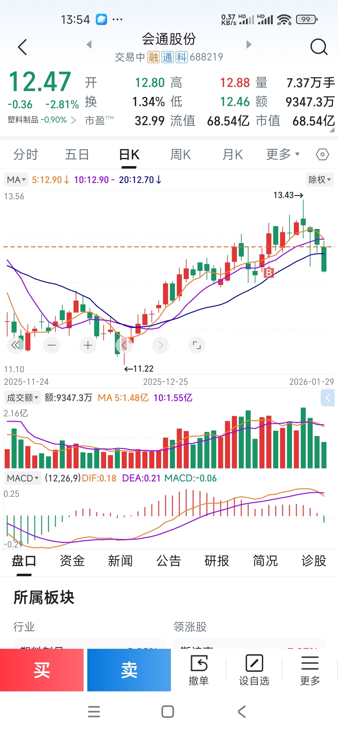 $会通股份(SH688219)$ 站在高位上胃疼股份