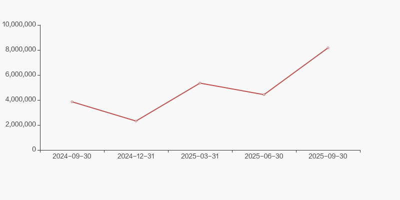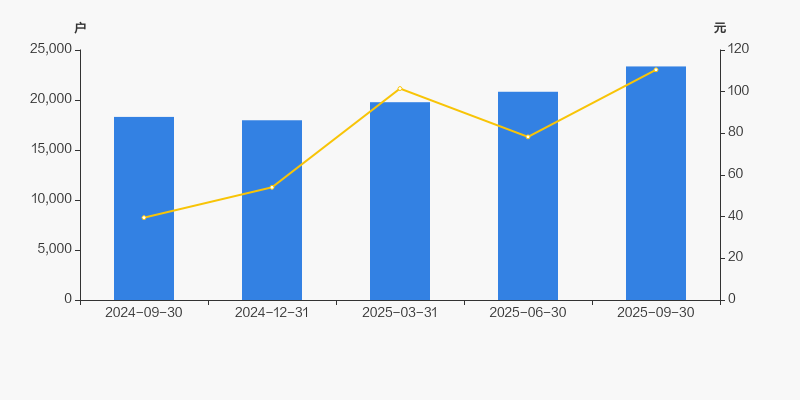 自2024年12月31日以来,公司股东户数连续3期上涨,截至目前增幅为29.95%。2024年12月31日至2025年9月30日区间股价上涨104.29%。