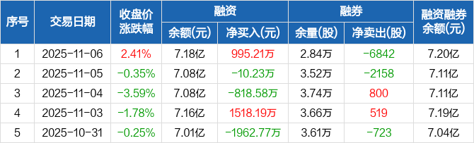 翱捷科技:融资净买入995.21万元,融资余额7.18亿元(11-06)