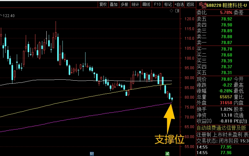 近期趋势走得比较弱,连续跌破了两条大的支撑线,接下来重点就盯着最后一条大均线77