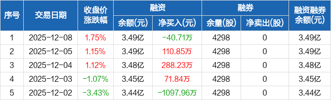 成都先导:融资净偿还40.71万元,融资余额3.49亿元(12-08)