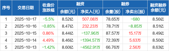 晶科能源:融资净买入507.08万元,融资余额8.52亿元(10-17)