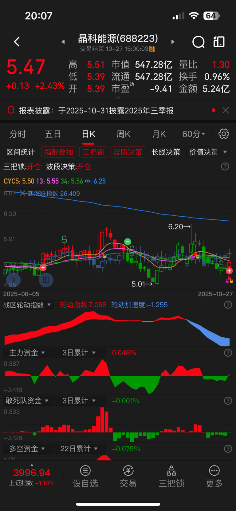 $晶科能源(SH688223)$ 指南针软件提示今天可以开仓