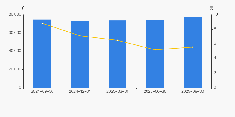 自2024年12月31日以来,公司股东户数连续3期上涨,截至目前增幅为6.24%。2024年12月31日至2025年9月30日区间股价下降21.80%。