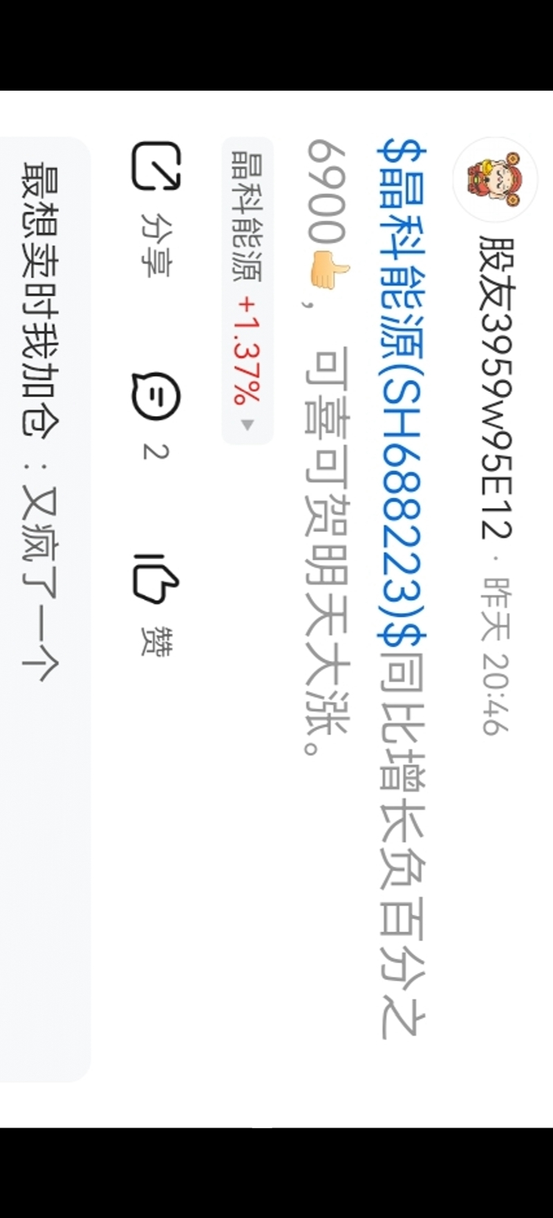 $晶科能源(SH688223)$ 晶科能源加仓加仓加仓,理由只有一个,因为它三季度大亏十个亿。