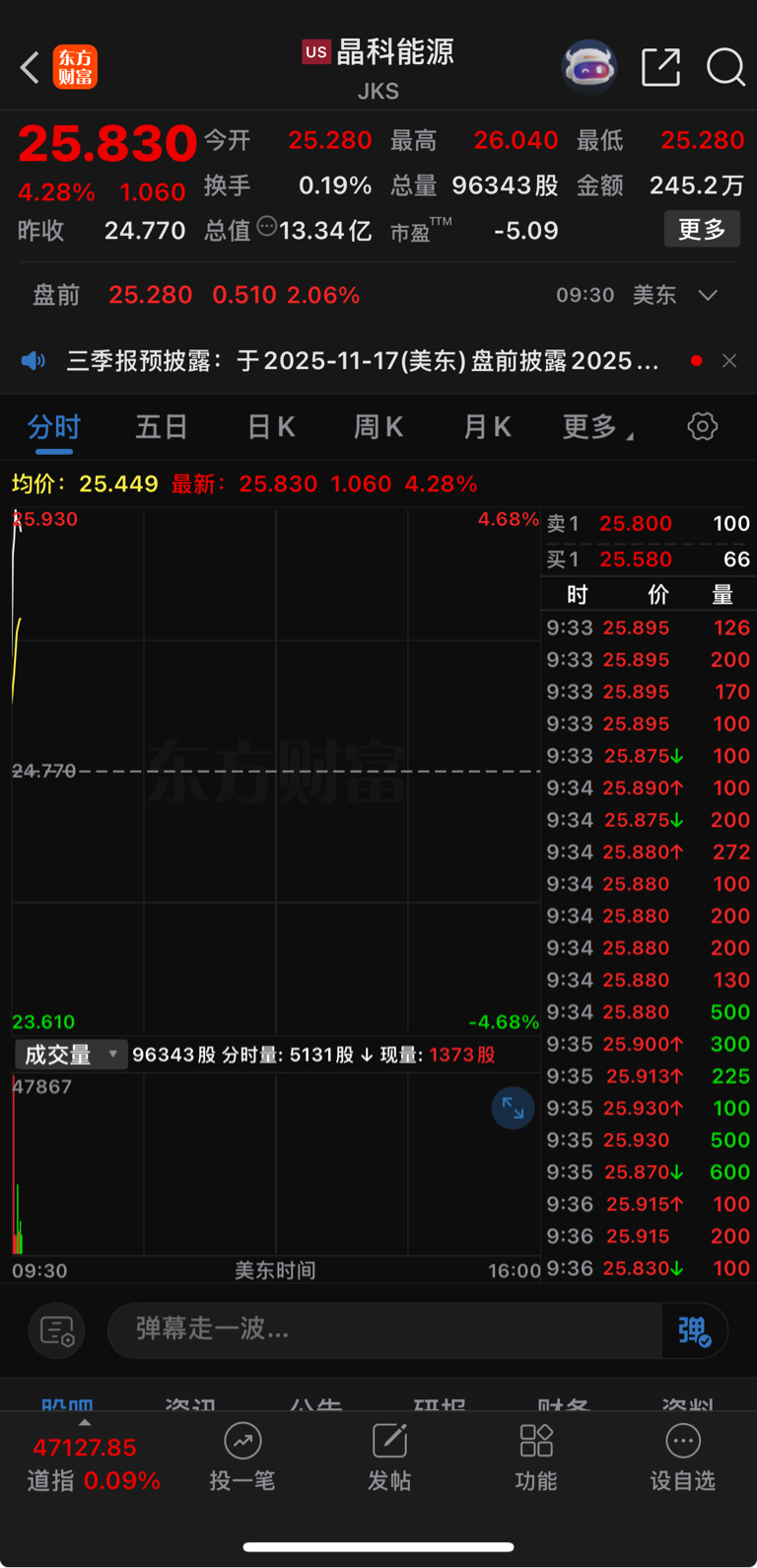 美股晶科能源开盘涨的不错!