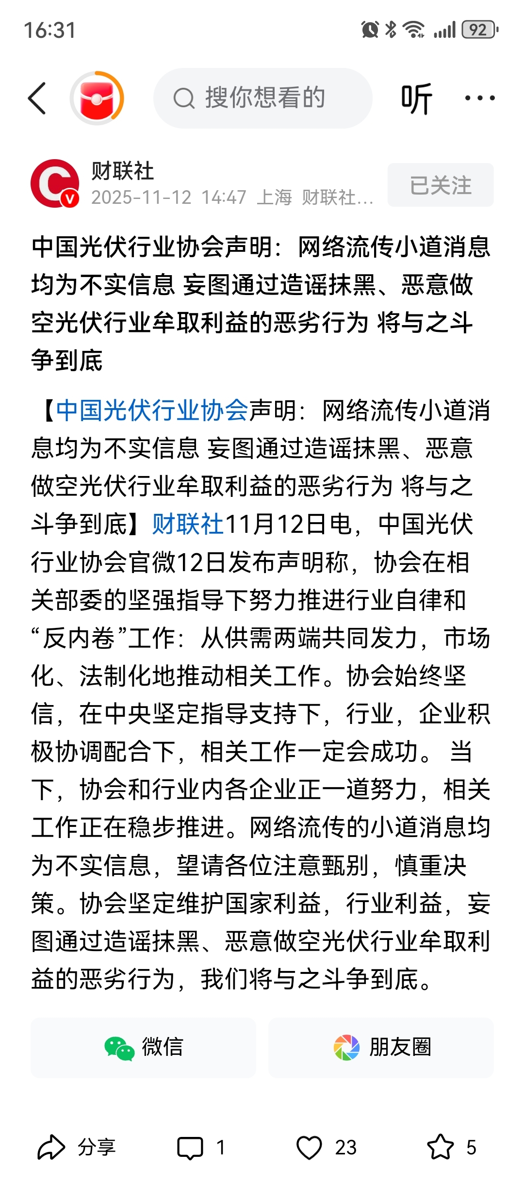 小作文的影响力巨大,今天整个光伏板块被砸成这样,收盘辟谣了,明天钱能不能还回来?