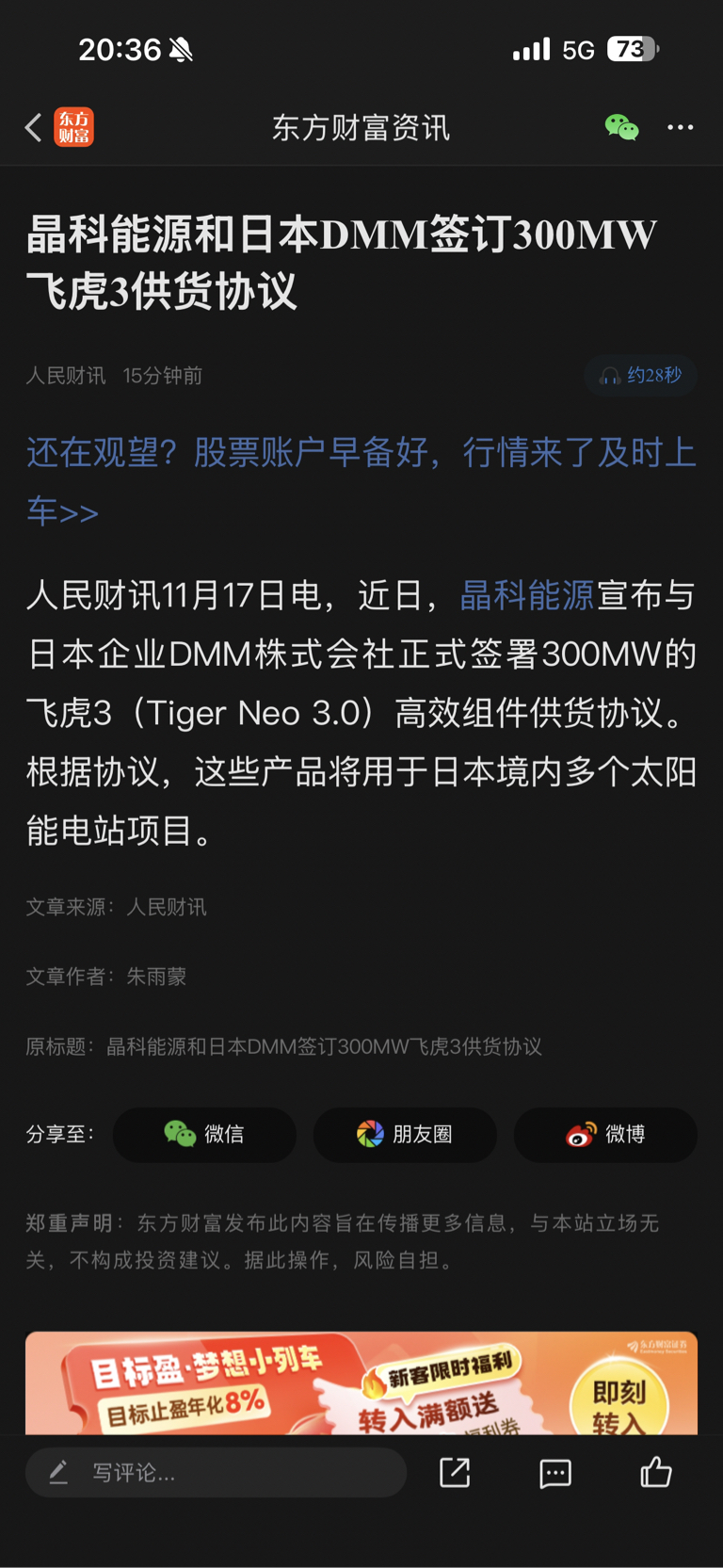 $晶科能源(SH688223)$ 发利好,有用吗?