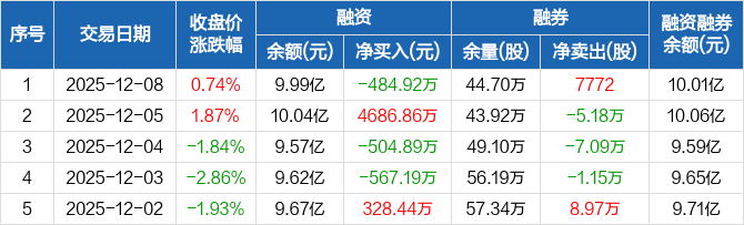 晶科能源:融资净偿还484.92万元,融资余额9.99亿元(12-08)