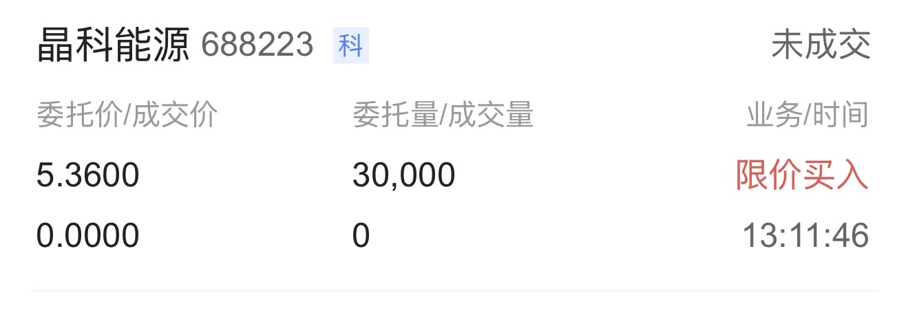 $晶科能源(SH688223)$ 5.36差一点点就成交了