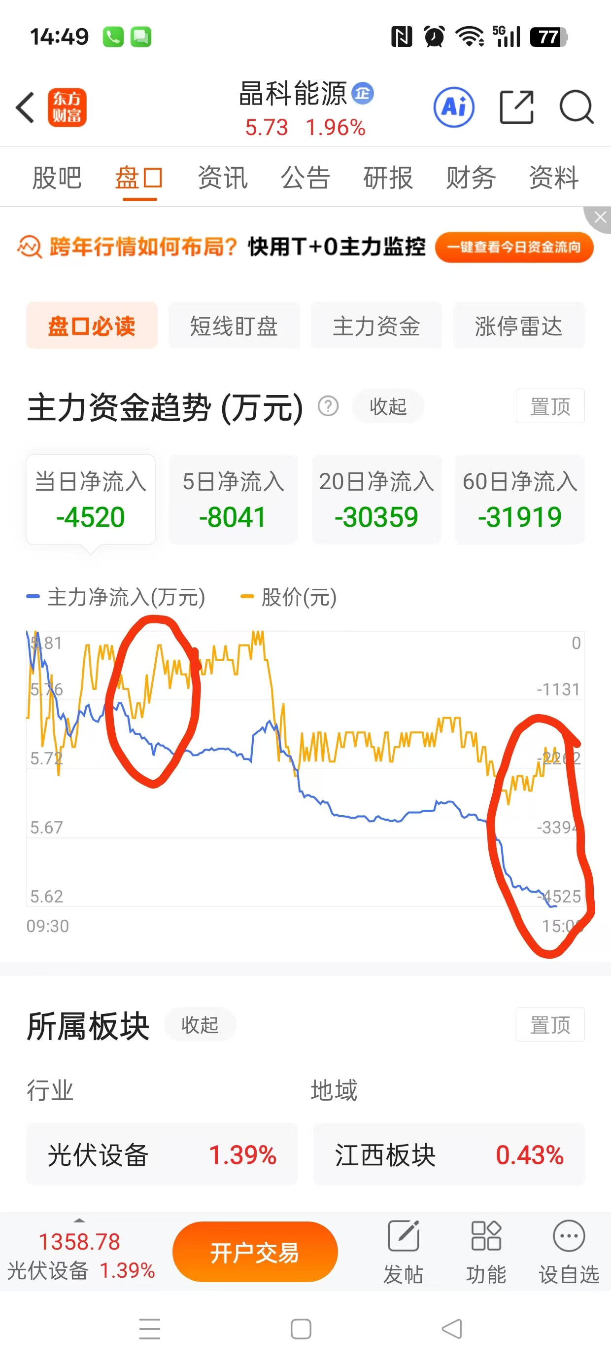 $晶科能源(SH688223)$ 换主力的节奏!老主力不想干了,新资金也没看它脸色!