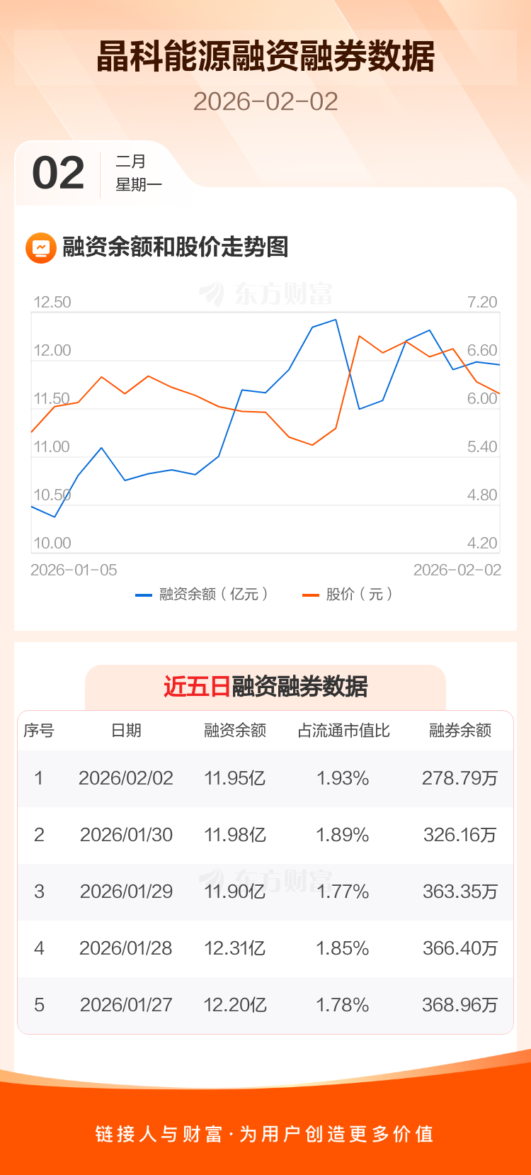 交易所最新数据显示,晶科能源于2026年2月2日获融资买入9533.21万元,融资偿还9809.29万元,当日融资净偿还276.07万元。目前,该股融资余额11.95亿,占流通市值比例为1.93%。