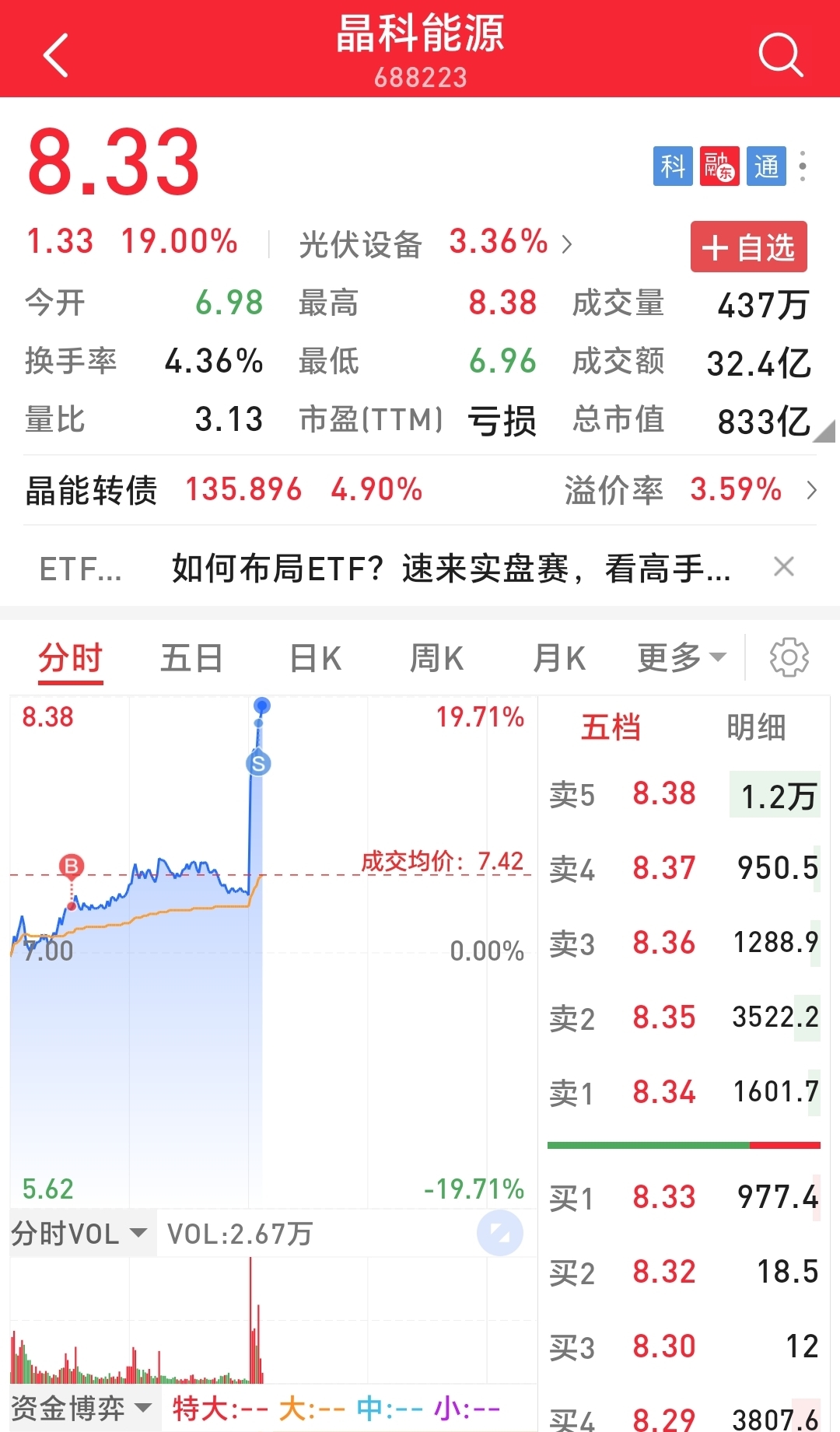 $晶科能源(SH688223)$ 短线废,做t第一次做成功