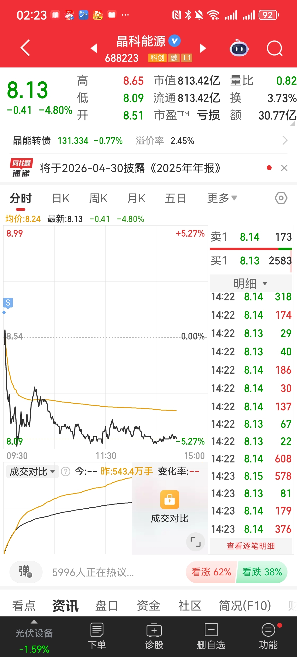 $晶科能源(SH688223)$ 这个今天还是算神操作撒,8.64卖的