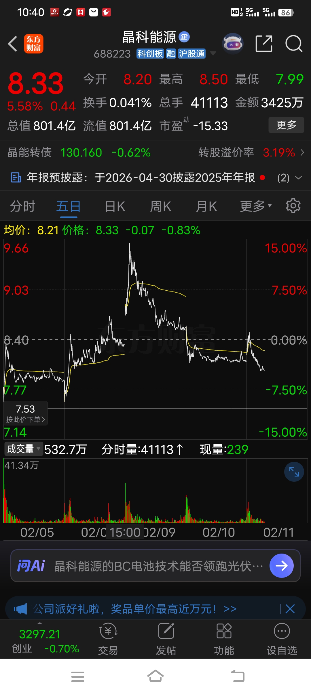 $晶科能源(SH688223)$ 7.5左右有点支撑。