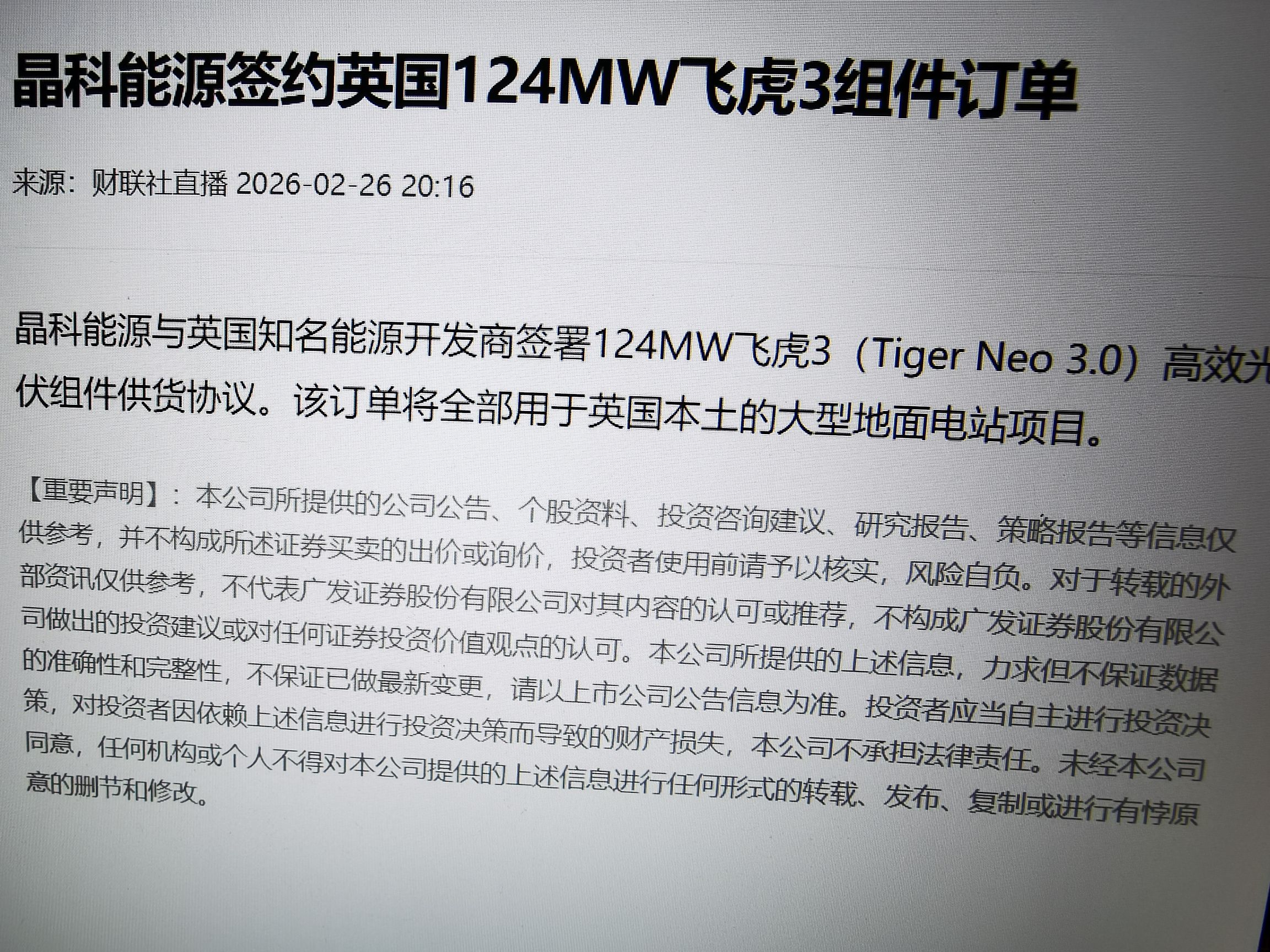 $晶科能源(SH688223)$ 有订单办什么不涨停板,浪费了这么好的消息