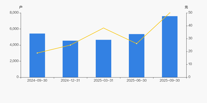 自2024年12月31日以来,公司股东户数连续3期上涨,截至目前增幅为67.00%。2024年12月31日至2025年9月30日区间股价上涨100.04%。