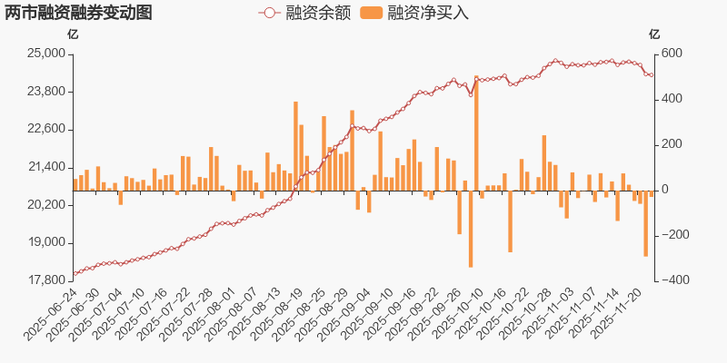 两市融资余额连续4日减少,累计422.69亿元(11-24)