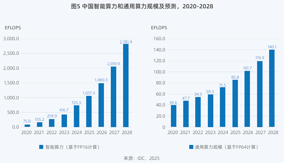 《报告》预计,2025年,中国智能算力规模将达到1037.3EFLOPS,较2024年增长43%;中国人工智能算力市场规模将达到259亿美元,较2024年增长36.2%。这一迅猛发展态势背后,是AI训练与推理需求激增、大模型技术突破以及算力基础设施快速迭代的共同作用。
