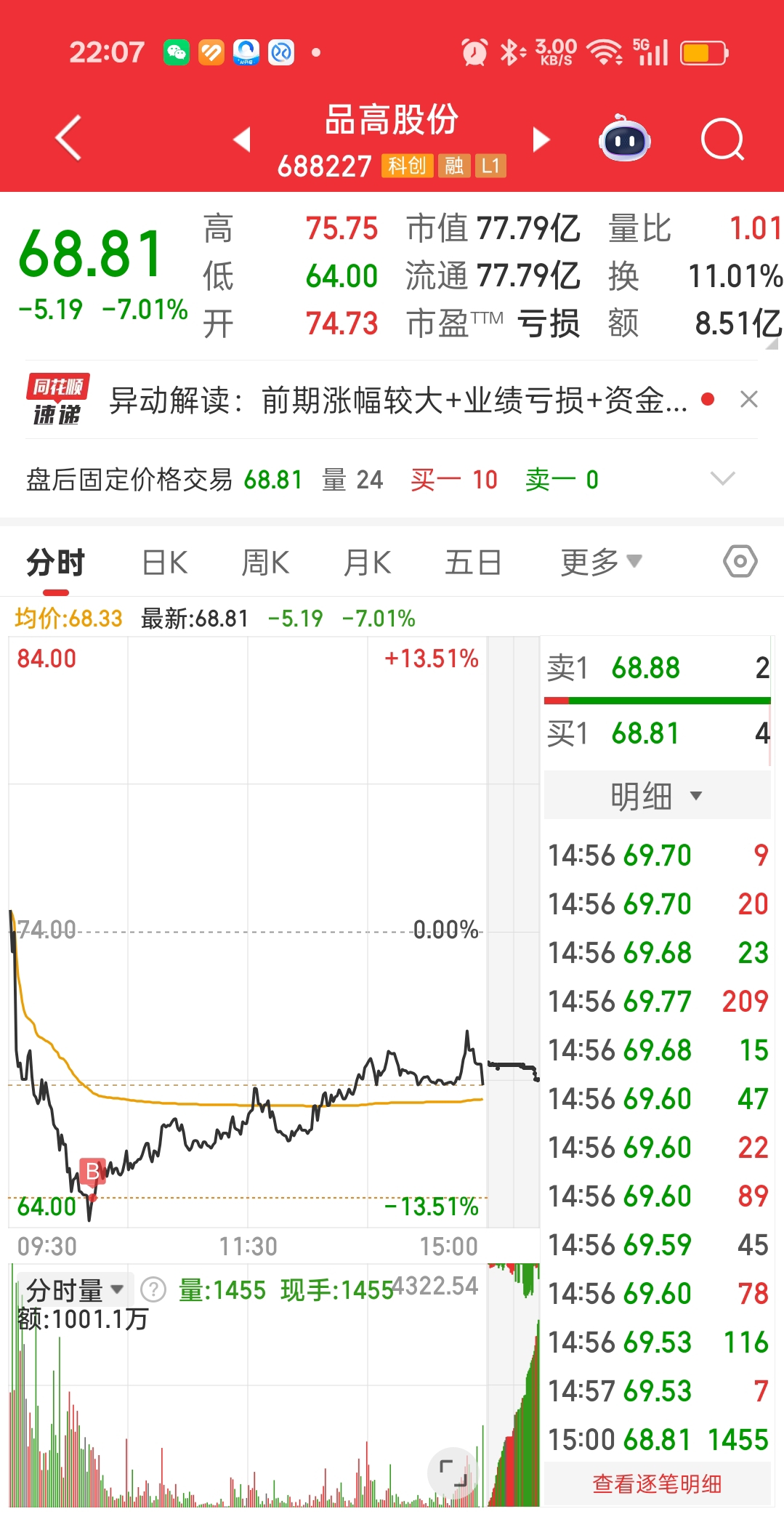 $品高股份(SH688227)$ 昨天割肉,今天头铁再上。