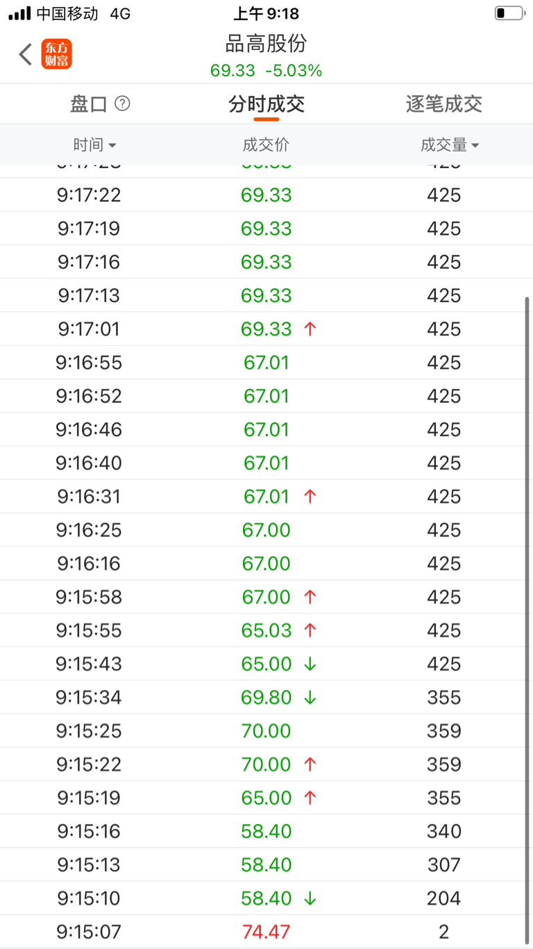 $品高股份(SH688227)$ 9点15分还有跌停价成交的?