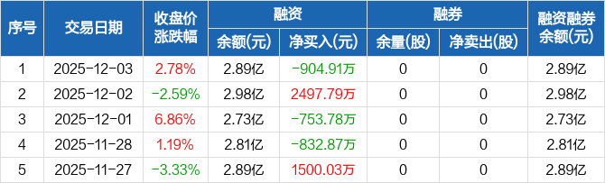 开普云:融资净偿还904.91万元,融资余额2.89亿元(12-03)