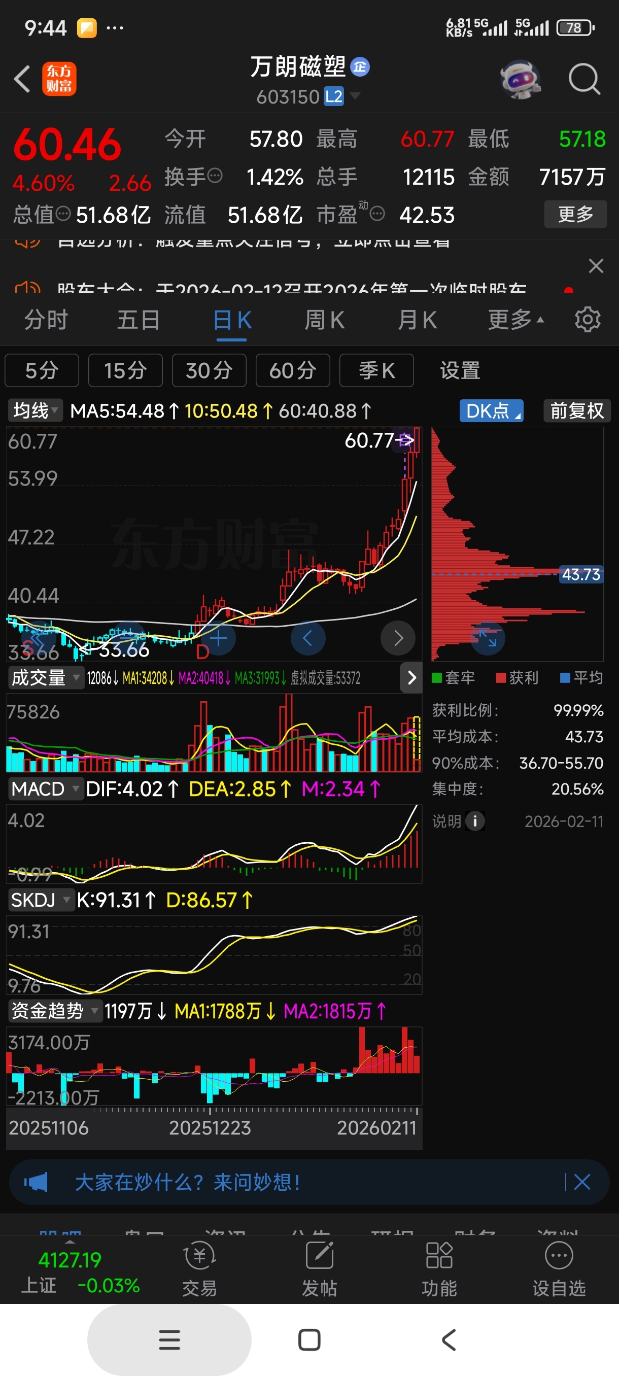 好股推荐:万朗磁塑,金牛化工