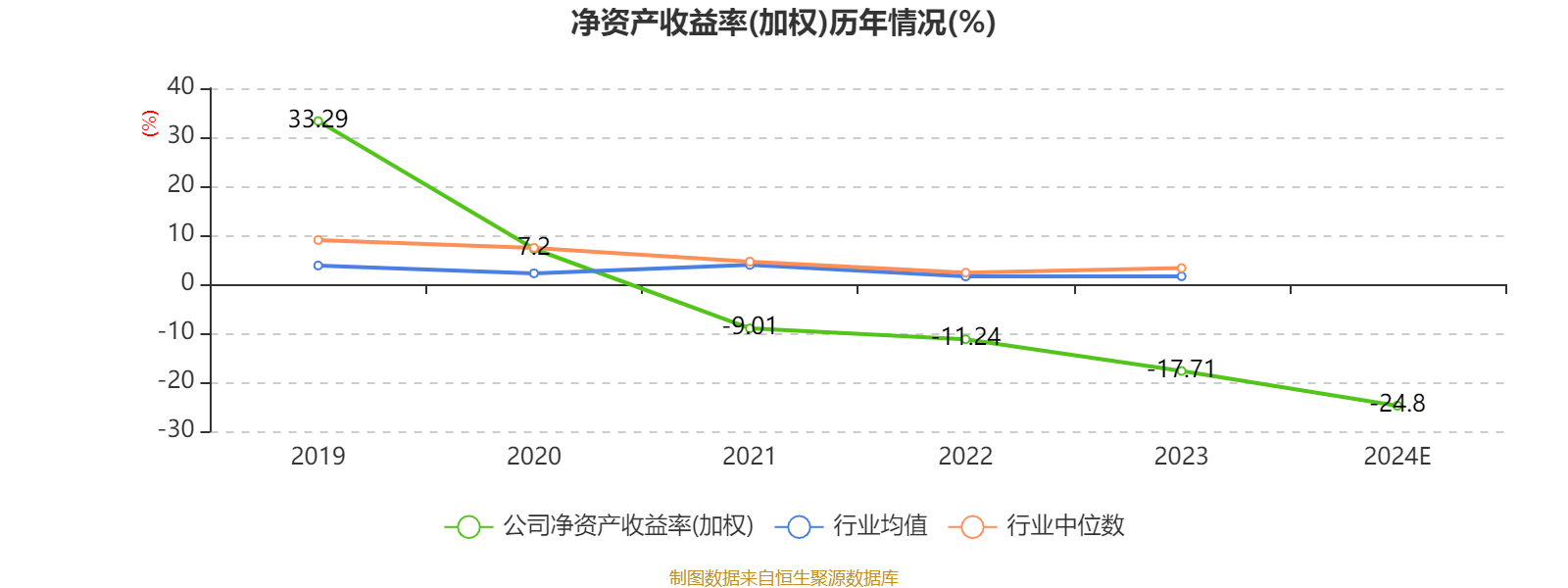 数据显示,2024年公司加权平均净资产收益率为-24.8%,较上年同期下降7.09个百分点。