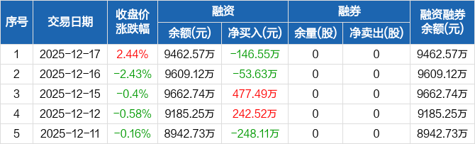 博睿数据:融资净偿还146.55万元,融资余额9462.57万元(12-17)