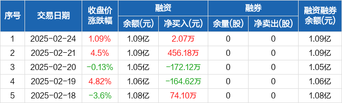 芯导科技:融资净买入2.07万元,融资余额1.09亿元(02-24)