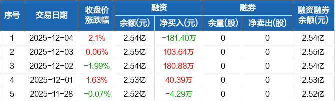 芯导科技:融资净偿还181.4万元,融资余额2.54亿元(12-04)