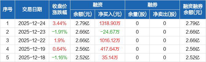 芯导科技:融资净买入1318.9万元,融资余额2.79亿元(12-24)