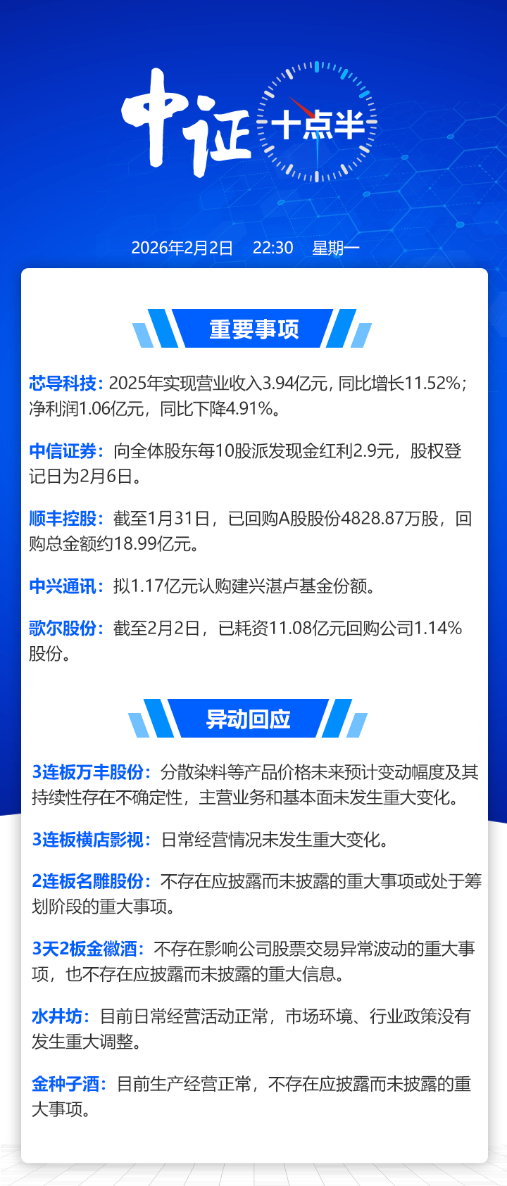 【中证十点半】芯导科技披露沪市2025年度首份年报;多家酒企回应股价异动