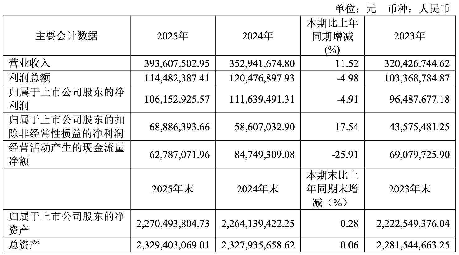 芯导科技(688230)2025年年度报告显示,公司实现营业收入39,360.75万元,较上年同期增长11.52%;实现利润总额1.14亿元,较上年同期减少4.98%;归母净利润1.06亿元,较上年同期减少4.91%;扣非净利润6888.64万元,较上年同期增长17.54%。