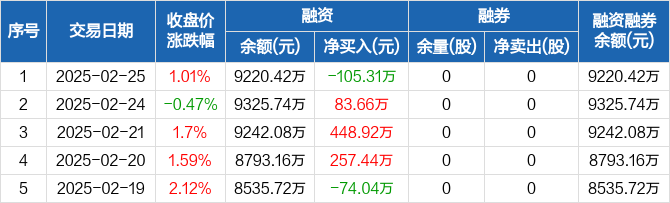 隆达股份:融资净偿还105.31万元,融资余额9220.42万元(02-25)