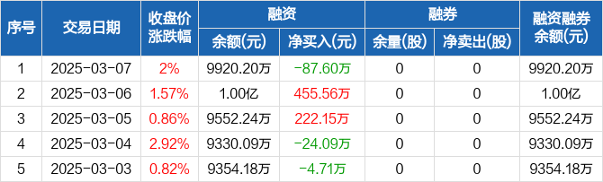 隆达股份:融资净偿还87.6万元,融资余额9920.2万元(03-07)