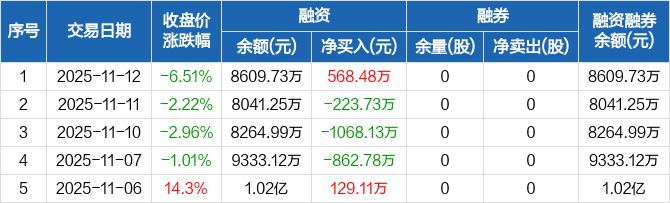 隆达股份:融资净买入568.48万元,融资余额8609.73万元(11-12)