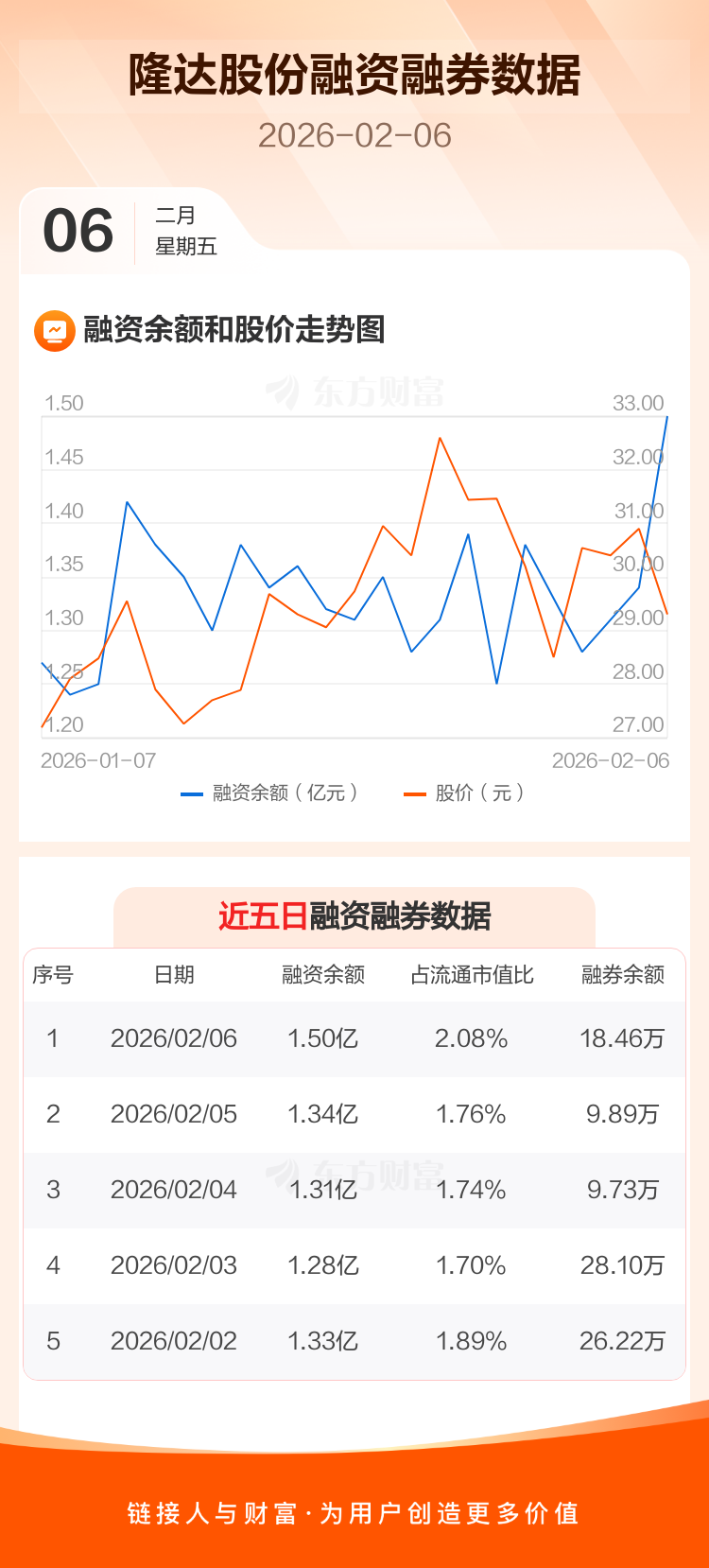 交易所最新数据显示,隆达股份于2026年2月6日获融资买入2813.83万元,融资偿还1186.82万元,当日融资净买入1627.01万元。目前,该股融资余额1.50亿,占流通市值比例为2.08%。