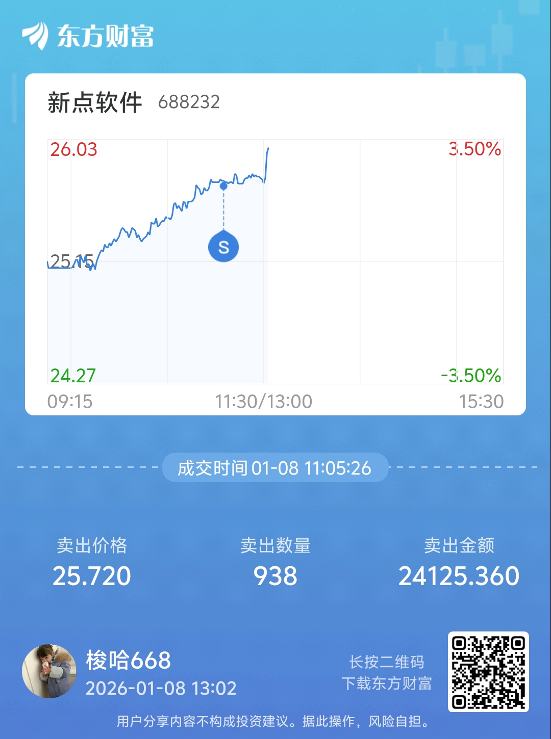 $新点软件(SH688232)$ 这回卖亏了