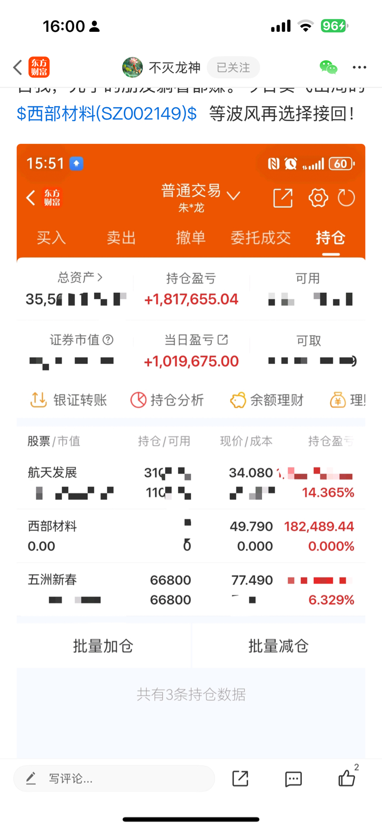 成本23,卖了,赚了69万,全仓一脉阳光百泽医疗,别人贪婪我恐惧,看看航天发展是