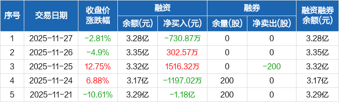 神工股份:融资净偿还730.87万元,融资余额3.28亿元(11-27)